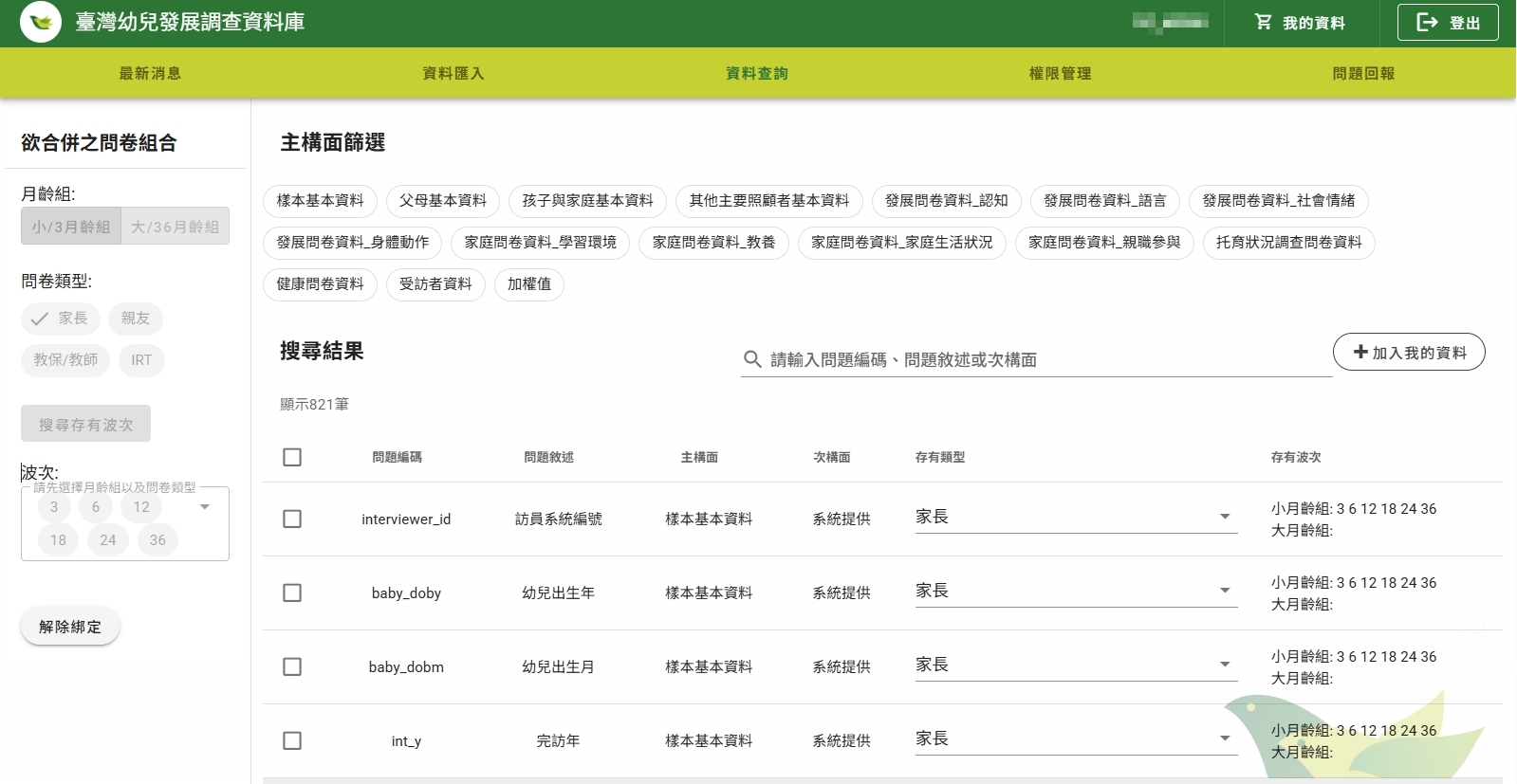 3. 左欄,選擇問卷(以3月齡組家長問卷為例),依序為: