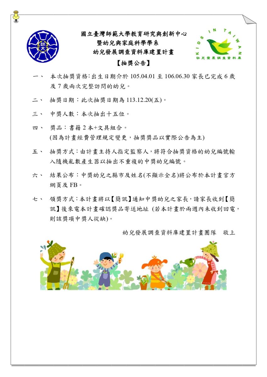 - Parents have fully completed the 6-year-old and 7-year-old child surveys.